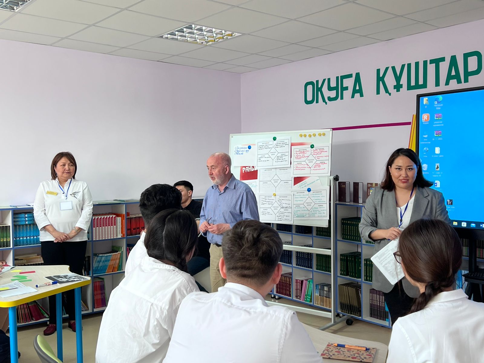 С приглашением учителей республики, учителей школ-партнеров, тренеров с ЦПМ и др.. Но самым важным гостем сегодняшнего мероприятия был эксперт в области образования (Шотландия) Роберт Сим.