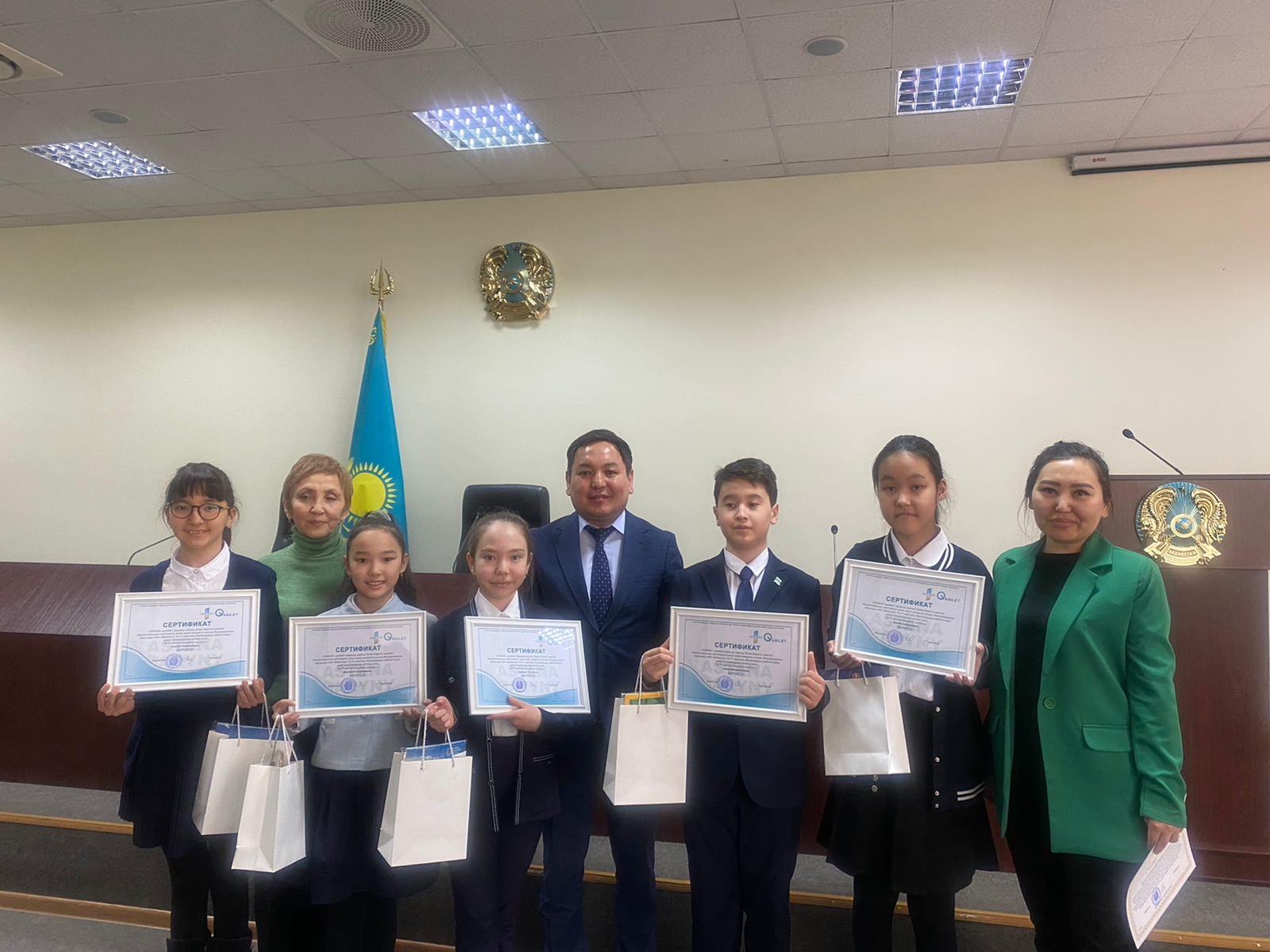 Победителями I этапа стали: Айбекова Жания 5 «В»,Дарбаева Джамиля 5«З» Лукпан Аяулым 5 «Г», Мирамбаев Амир- 5 «Л», Рахметова Амина 5 «Б». Награждение состоялась в Есильском акимате г.Астана