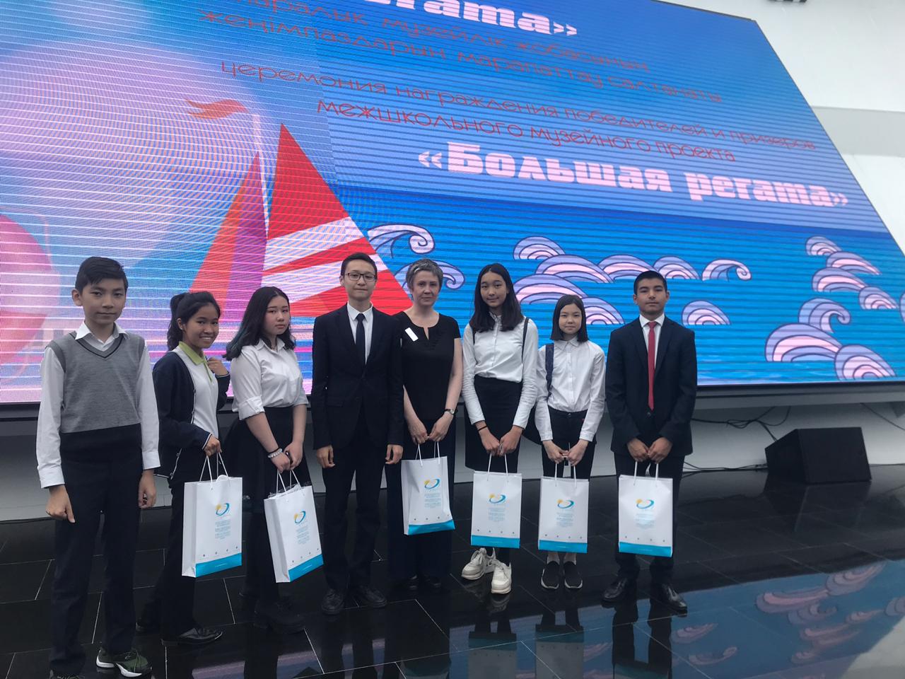 С сентября команда Санта-Мария приняла участие в музейной регате. Ребята посещали музеи, выполняли задания, собирали пазлы, снимали видео. Благодаря своему упорству команда вышла в финал. В финальной игре команда прошла сложнейший квест в Назарбаев –центре. Все постарались, но лучшим из лучших стал капитан команды Сайдуов Тахир. Тахир был признан лучшим капитаном регаты и в итоге команда заняла 1 место. Молодцы!!! Мы вами гордимся! Хочется особую благодарность выразить учителю истории, руководителю команды Абдулиной Эстелле Артуровне.
